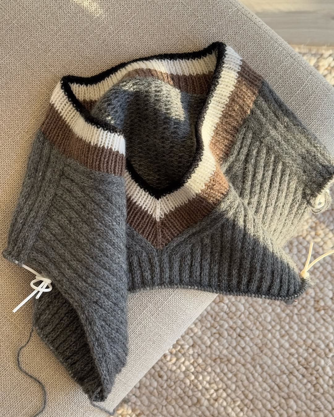 *Der graue Pullover auf dem Foto ist aus Como col.28M (Haupt) & col.48M, col.00, col.01 (zusätzlich) von LAMANA [GRÖSSE M] gefertigt.