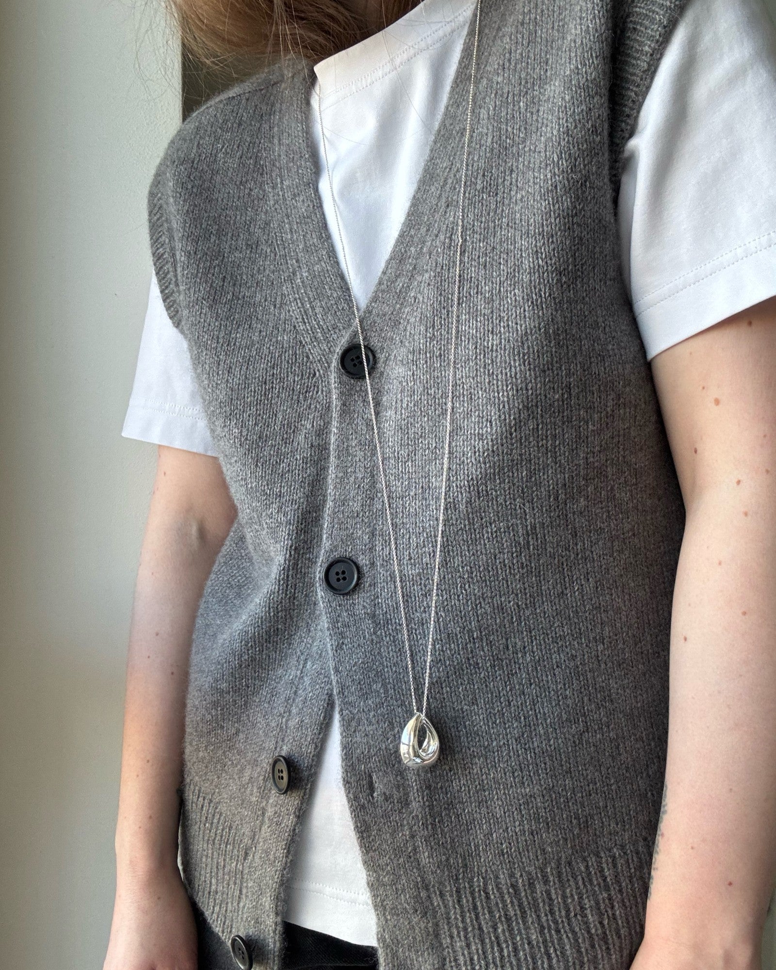 *Le gilet gris sur la photo est réalisé avec Cashmere Classic col. 519 par Cardiff Cashmere [TAILLE M].
