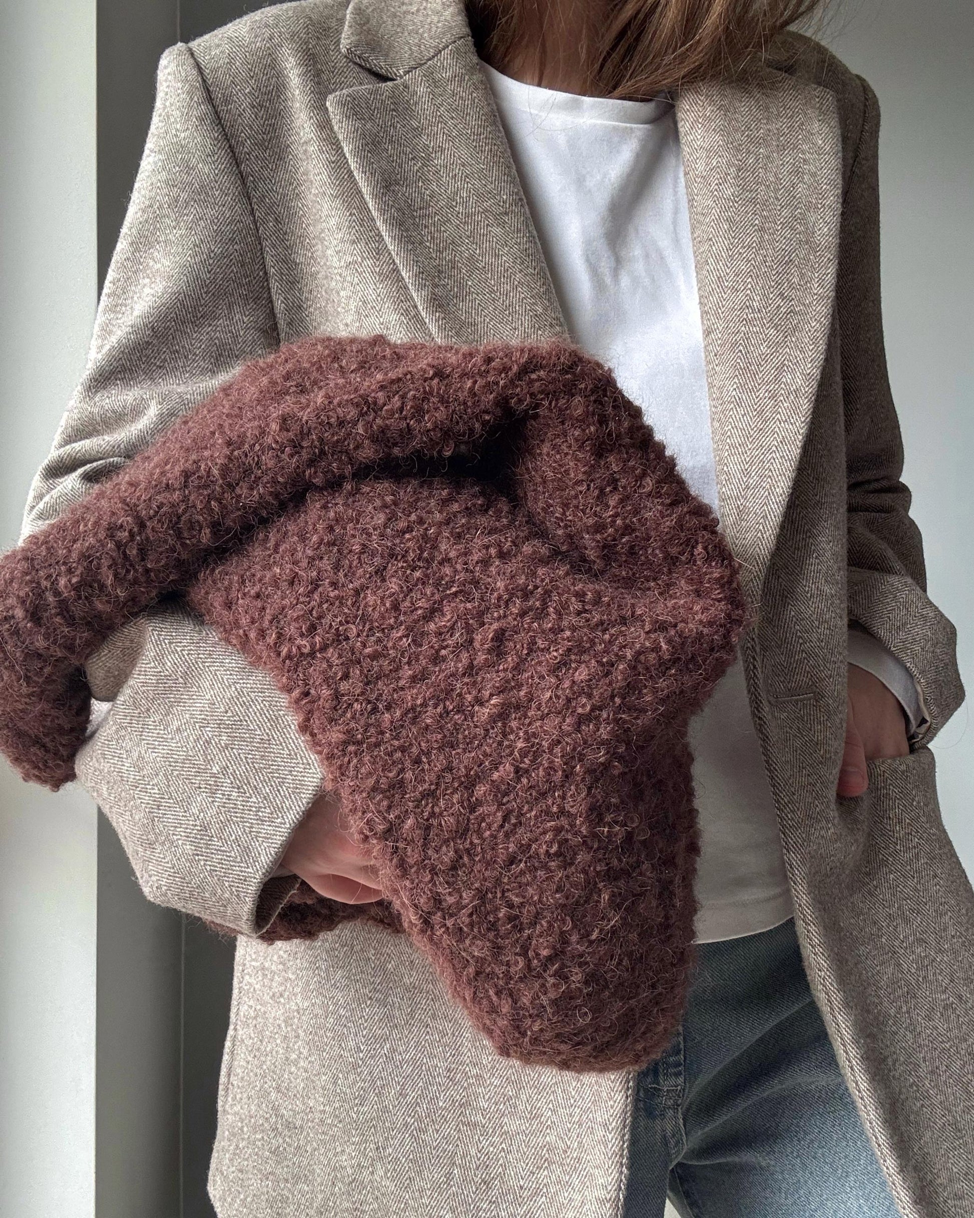 *Den dybrøde taske på billedet er lavet med Flette Bulky farve FB13 fra Woolfolk.